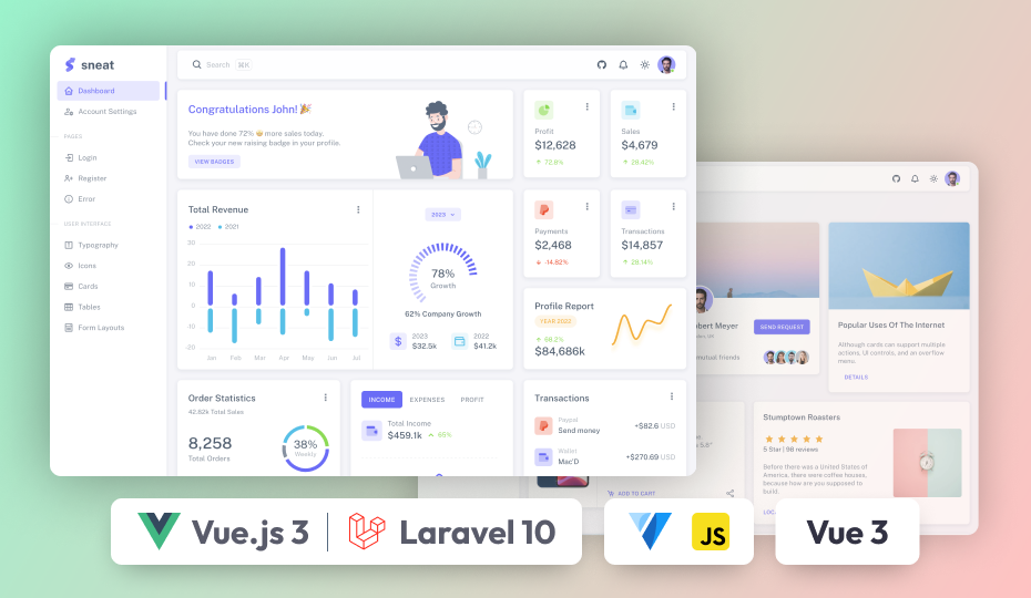 Simple, Well-designed, and uncomplicated Admin templates make website administration an easy task. When it comes to delivering the best performance, Laravel is one of the best framework choices for admin panel templates. On ThemeSelection, you will find such best-designed, and easy-to-use PHP laravel admin dashboard templates. It also includes a starter kit that will help you easily kick-start your next project.