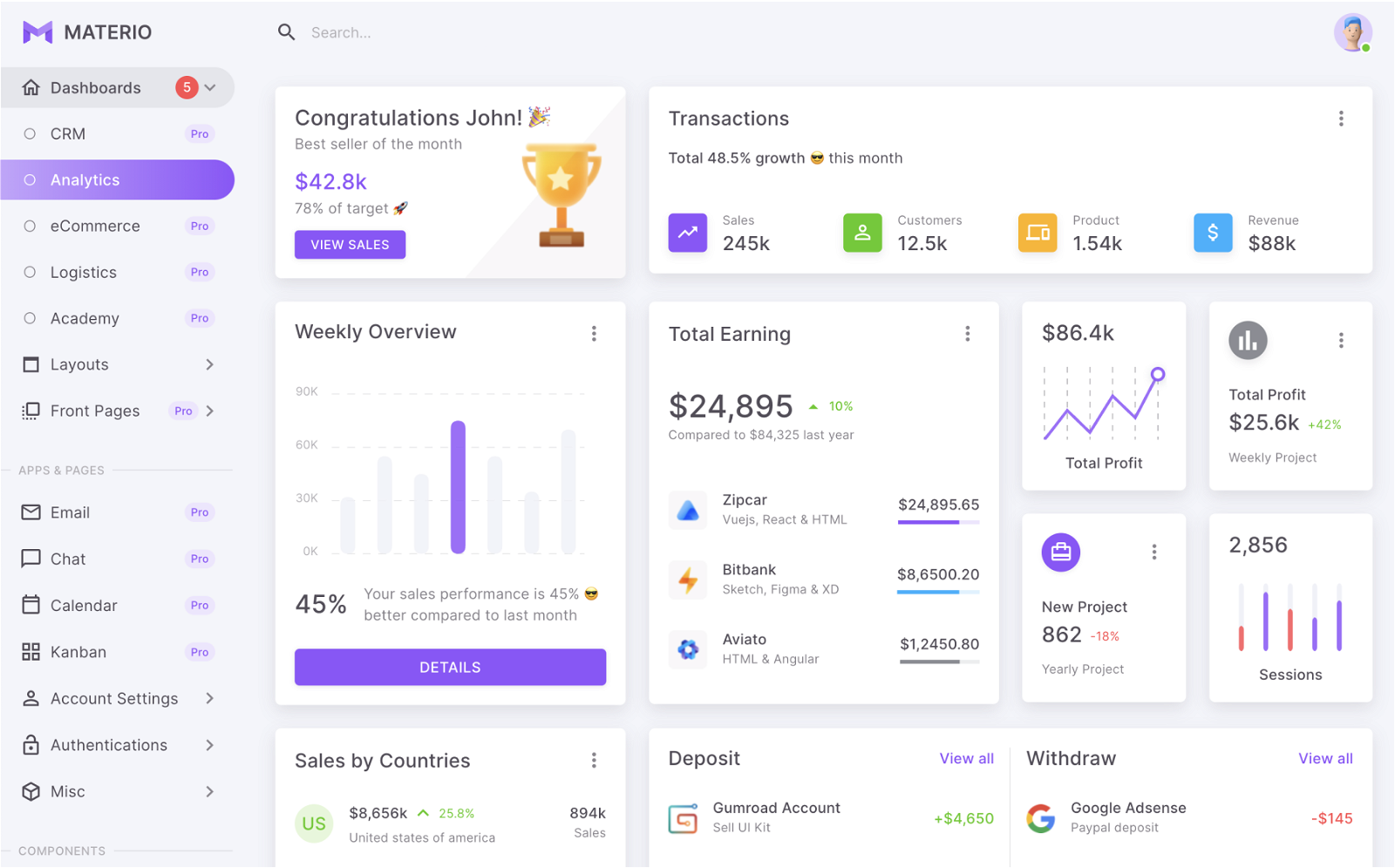 If you’re a developer looking for a VueJS based laravel admin panel template free that is developer-friendly, rich with features, and highly customizable look no further than Materio. Besides, we’ve followed the highest industry standards to bring you one of the very bestDashboard template Free. It is not only fast and easy to use but highly scalable. Furthermore, offering ultimate convenience and flexibility, you’ll be able to build whatever application you want with very little hassle.