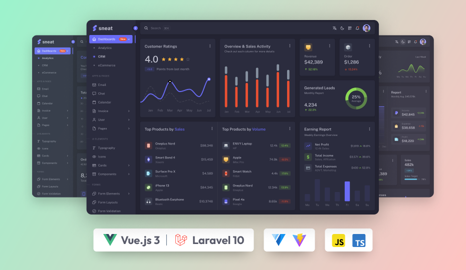 Sneat Vuetify VueJS Laravel Admin Dashboard Template – is the most developer-friendly & highly customizable Admin Dashboard Template based on the popular front-end framework VueJS and back-end Laravel.